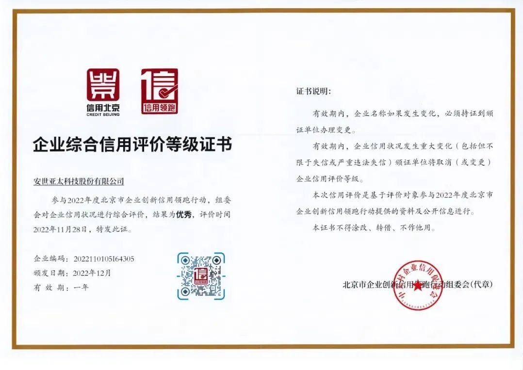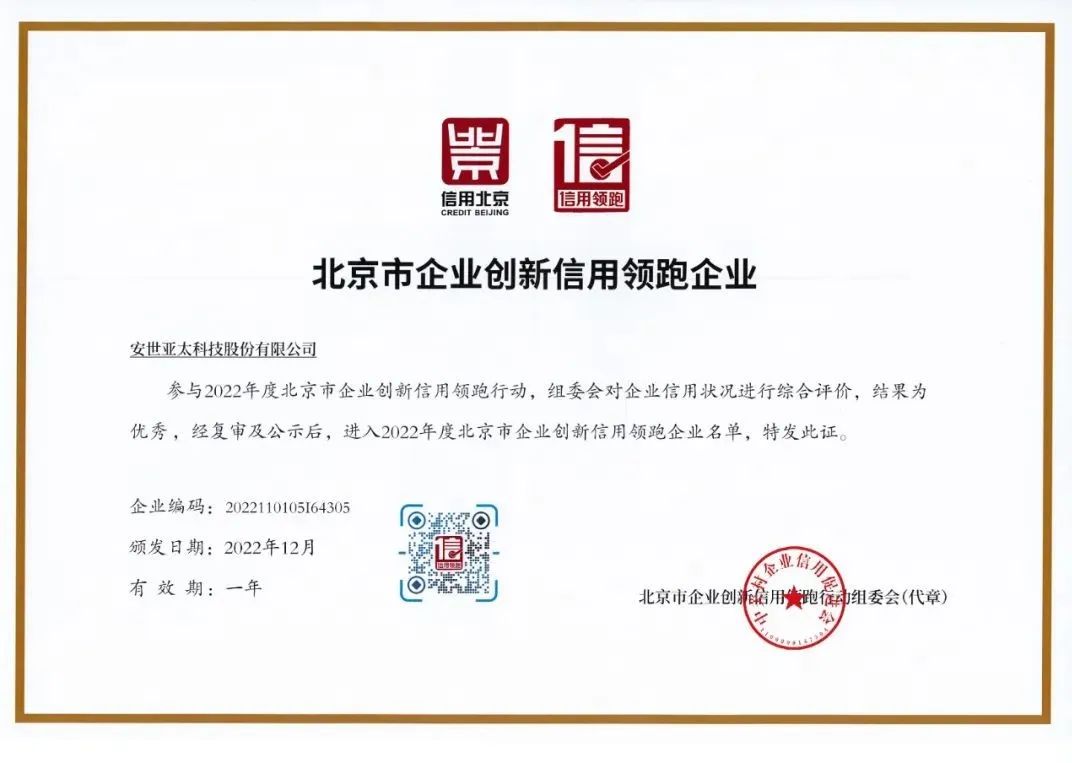 安世亞太成功入圍北京市2022年度企業(yè)創(chuàng)新信用領(lǐng)跑企業(yè)名單