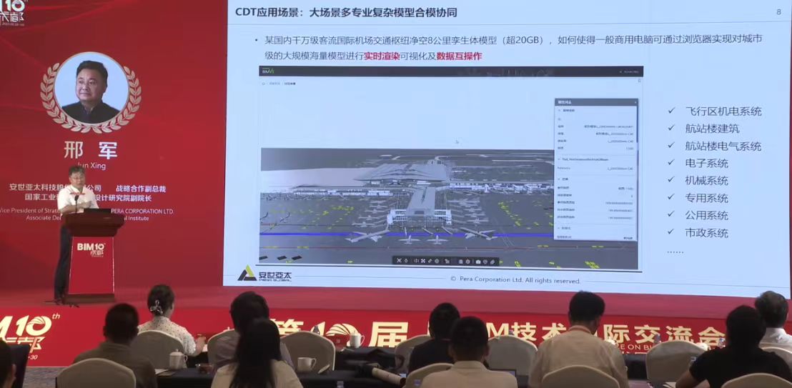 會議期間,安世亞太科技股份有限公司戰(zhàn)略合作副總裁邢軍發(fā)表《UDC:基于IFC標(biāo)準(zhǔn)的城市數(shù)字孿生數(shù)據(jù)管理及綜合建模與仿真云平臺》主題報告,受到熱烈反響。