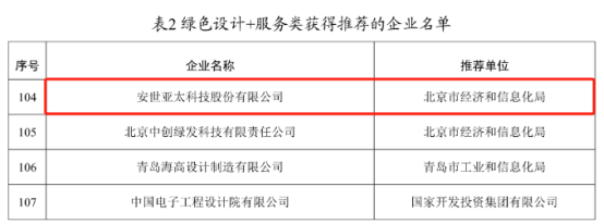 熱烈祝賀!安世亞太入選工信部第五批工業(yè)產(chǎn)品綠色設計示范企業(yè)!