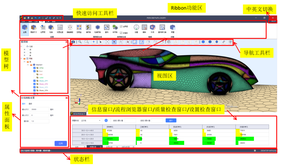 PERA SIM Premech作為面向機(jī)械結(jié)構(gòu)仿真分析的高級(jí)前處理工具,具有完善的圖形用戶界面(GUI)、豐富的CAD接口以及強(qiáng)大的建模功能,協(xié)助用戶完成文件導(dǎo)入、創(chuàng)建模型、網(wǎng)格劃分、創(chuàng)建連接等一系列操作。PERA SIM PreMech 支持多個(gè)商業(yè)求解器,可以為 MSC Nastran、LS-Dyna、Abaqus 等商業(yè)軟件輸入求解文件。