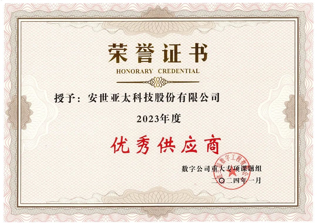 近日,安世亞太榮獲中建三局數(shù)字工程有限公司頒發(fā)的“優(yōu)秀供應商”稱號。