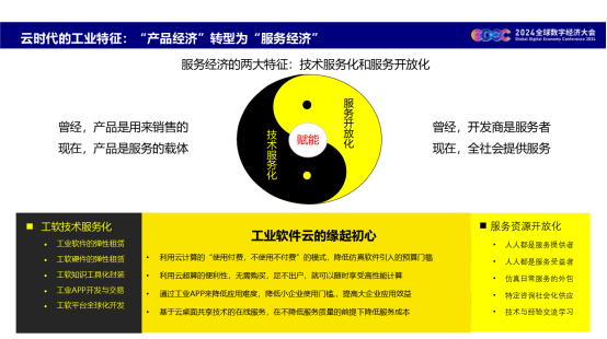 田鋒先生指出,工業(yè)互聯(lián)網(wǎng)時代的工業(yè)特征是從產(chǎn)品經(jīng)濟轉(zhuǎn)向服務(wù)經(jīng)濟,商業(yè)生態(tài)也隨之發(fā)生了巨大變化:數(shù)據(jù)要素和知識要素成為重要的生產(chǎn)力要素,田鋒先生分享了安世亞太利用這兩個要素來賦能中國工業(yè)體系的經(jīng)驗、當(dāng)前的成果以及針對未來的思考。服務(wù)經(jīng)濟的兩大特征是技術(shù)服務(wù)化和服務(wù)開放化,工業(yè)軟件云應(yīng)運而生。通過按需使用、在線服務(wù)等方式,降低采購門檻,成為推動工業(yè)互聯(lián)網(wǎng)發(fā)展的重要力量。