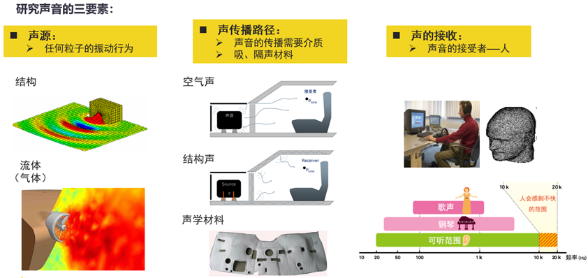 聲學(xué)是一種復(fù)雜的波動現(xiàn)象,其產(chǎn)生、空間傳播及各類吸收、反射、衍射、干涉等邊界條件的復(fù)雜特性決定了對其進(jìn)行研究的艱深性,無論采用測試或仿真的技術(shù)手段均如此。隨著物理和數(shù)學(xué)模型的虛擬仿真分析技術(shù)越來越成熟,聲學(xué)仿真已經(jīng)成為現(xiàn)代科技和工程領(lǐng)域不可或缺的依賴性支撐技術(shù)。