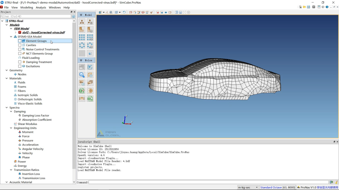 安世亞太有兩款聲學(xué)仿真產(chǎn)品,其中,PERA SIM ProNas中高頻振動噪聲仿真軟件基于能量有限元理論,作為傳統(tǒng)振動噪聲仿真方法的補(bǔ)充,在解決結(jié)構(gòu)中高頻振動噪聲問題中,展示出獨(dú)特的優(yōu)勢。它可以解決傳統(tǒng)方法在求解結(jié)構(gòu)中高頻振動噪聲問題時(shí),由于波長減小模型細(xì)化導(dǎo)致的求解規(guī)模問題,以及中高頻范圍內(nèi)模態(tài)密集,導(dǎo)致仿真結(jié)果對初始參數(shù)、結(jié)構(gòu)細(xì)節(jié)的高敏感度,計(jì)算精度低的問題。