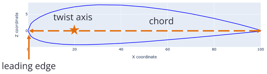 PERA智能體平臺通過深度融合CAE仿真與人工智能技術(shù),為機翼設(shè)計中的多學科耦合問題提供創(chuàng)新解決方案。為了表征單個橫截面(圖2),可以使用輪廓類型、前緣坐標、弦長、旋轉(zhuǎn)軸坐標和旋轉(zhuǎn)角度等參數(shù)。