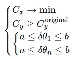 優(yōu)化問題表述如下:尋求一種設(shè)計方案,在保持初始升力的同時,使阻力最小化。本例中的控制參數(shù)是各個橫截面的旋轉(zhuǎn)角度: