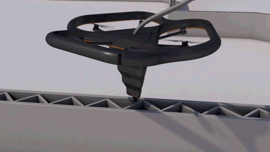 ? ? ? 德迪創(chuàng)造性地將無人機作為打印噴頭的載體,配備持續(xù)性的供料系統(tǒng),適用于大型建筑、太空設(shè)備、海底建筑等場景。