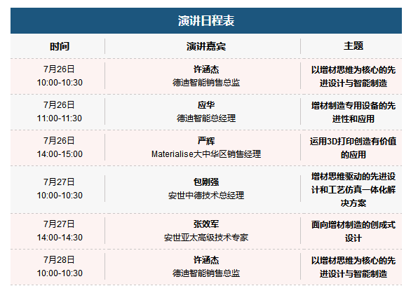 展會(huì)期間,德迪還將以增材思維為核心,聚焦全產(chǎn)業(yè)鏈,開(kāi)展一系列演講活動(dòng)。德迪智能總經(jīng)理應(yīng)華先生、安世中德技術(shù)總經(jīng)理包剛強(qiáng)先生、Materialise大中華區(qū)銷售經(jīng)理嚴(yán)輝先生將作為演講嘉賓,分享關(guān)于創(chuàng)成式設(shè)計(jì)、拓?fù)鋬?yōu)化、增材制造先進(jìn)性等方面的專業(yè)知識(shí)。