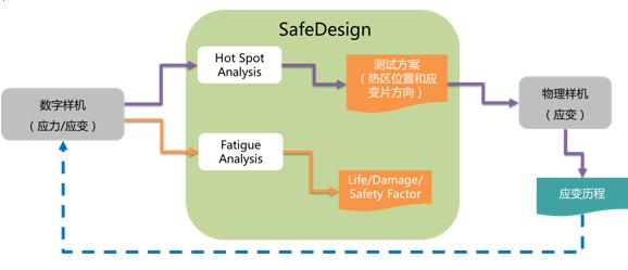 安世亞太SafeDesign軟件擁有三大關鍵技術,包括:復雜結構熱區(qū)定位技術、先進的自由表面貼片技術和最損傷載荷方向的專利搜索技術,從而幫助企業(yè)快速形成高質(zhì)量的測試方案,獲得高精度的測試結果;通過與測試的對標,保證仿真模型的合理性,實現(xiàn)優(yōu)化設計,使仿真驅(qū)動產(chǎn)品研發(fā)成為可能;此外,基于驗證的仿真模型所做的仿真分析,可以有效減少復雜的物理樣機測試次數(shù),提升產(chǎn)品研發(fā)效率,降低研發(fā)成本;使仿真數(shù)據(jù)和試驗數(shù)據(jù)高度融合,獲得更完整的性能響應空間,獲得試驗無法獲得的數(shù)據(jù);而基于驗證的仿真模型,可建立企業(yè)的仿真規(guī)范,形成企業(yè)的核心資產(chǎn)。