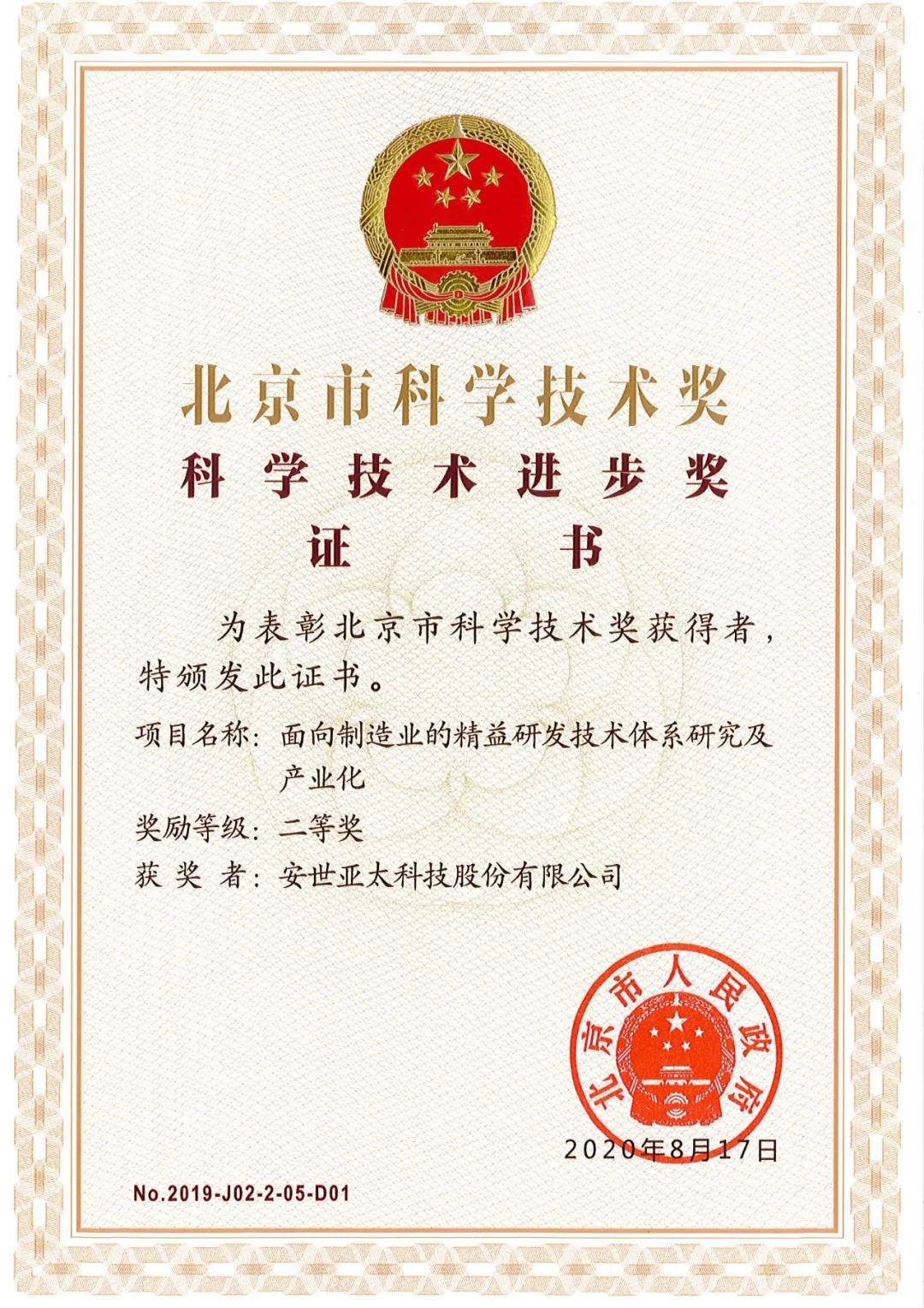安世亞太公司榮獲北京市科學(xué)技術(shù)進(jìn)步二等獎(jiǎng)