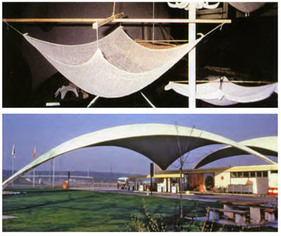 19世紀(jì)末的建筑領(lǐng)域出現(xiàn)的一種新方法——找形(form-finding),可以解決類似懸鏈線的問(wèn)題。一些先驅(qū)建筑設(shè)計(jì)師試圖通過(guò)研究材料、形狀和結(jié)構(gòu)之間復(fù)雜而關(guān)聯(lián)的關(guān)系,發(fā)現(xiàn)新穎和優(yōu)化的結(jié)構(gòu)。在當(dāng)時(shí)缺乏物理數(shù)學(xué)模型理論基礎(chǔ)的條件下,“找形”是依賴于物理模擬裝置來(lái)實(shí)現(xiàn)的,例如:通過(guò)肥皂泡發(fā)現(xiàn)最小表面;通過(guò)懸垂織物,發(fā)現(xiàn)只受壓力的拱頂和分支結(jié)構(gòu)等。