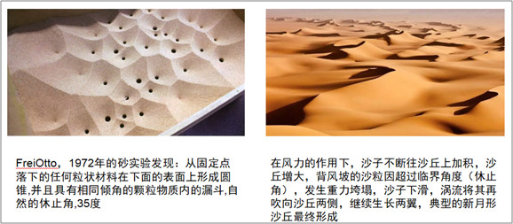 圖 2? 單參數(shù)物理試驗(yàn)與多參數(shù)自然形成的形狀 (左圖引自[1],右圖來(lái)源于互聯(lián)網(wǎng))