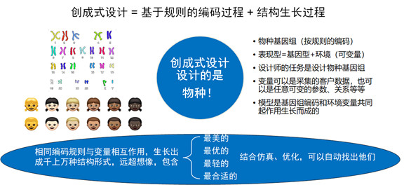 “創(chuàng)成式設(shè)計(jì)”是由“Generative Design(GD)”翻譯過(guò)來(lái)的一種對(duì)設(shè)計(jì)系統(tǒng)和方法的表達(dá),早期通常翻譯為“生成式設(shè)計(jì)”或“衍生式設(shè)計(jì)”,有些文獻(xiàn)和書(shū)籍上稱這種方法為“算法輔助設(shè)計(jì)(AAD——Algorithms-Aided Design)”或“計(jì)算性設(shè)計(jì)(Computational Design)”,建筑領(lǐng)域的人們習(xí)慣稱之為“參數(shù)化設(shè)計(jì)”。這種方法起源于建筑領(lǐng)域,最近的十年中在建筑設(shè)計(jì)和視覺(jué)藝術(shù)領(lǐng)域得到廣泛應(yīng)用,但制造業(yè)領(lǐng)域的人還對(duì)其一無(wú)所知。