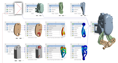 在機(jī)器人機(jī)械臂的增材設(shè)計(jì)中,安世亞太在ANSYS平臺(tái)下完成了對(duì)機(jī)器人兩個(gè)機(jī)械臂部件進(jìn)行拓?fù)鋬?yōu)化,流程包括拓?fù)鋬?yōu)化、結(jié)構(gòu)光順、模型驗(yàn)證,并通過(guò)3D打印工藝生產(chǎn)制造。優(yōu)化結(jié)果在最大應(yīng)力和最大變形相當(dāng)?shù)那闆r下,重量減少了40%。