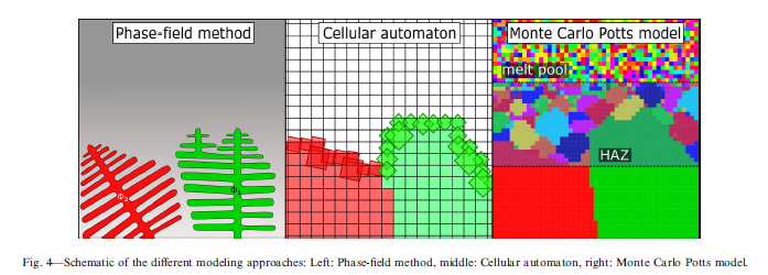 ?所有這些方法都顯示出特定的優(yōu)點和缺點。然而,它們面臨一個共同的挑戰(zhàn)–新晶粒成核的建模。金屬3D打印中,成核是一個關(guān)鍵問題,遠(yuǎn)遠(yuǎn)沒有解決。