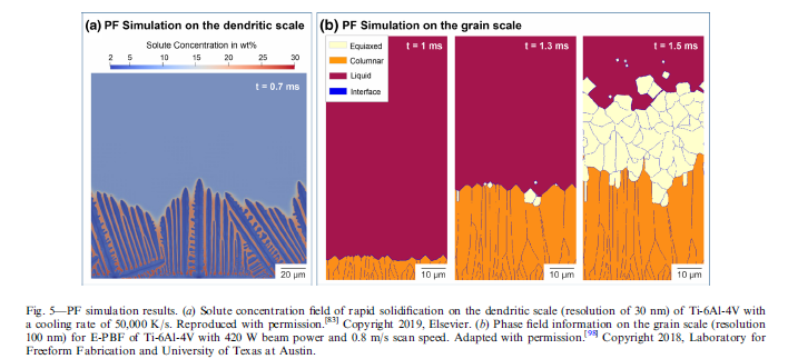 慮了合金的復(fù)雜凝固模式的形成和偏析。由于極高的計算量,PF模型通常僅限于僅具有某些成分(通常為兩個或三個元素)的合金。PF模型不僅可以提供有關(guān)晶粒結(jié)構(gòu)的信息,還可以提供樹枝狀的偏析模式。