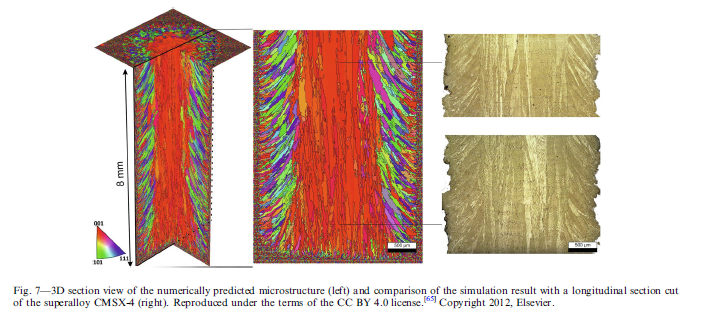 ??微觀結(jié)構(gòu)建模的基礎(chǔ)是定義明確的溫度場,描述了在凝固前沿對溫度進(jìn)行建模的不同方法,并討論了它們的具體優(yōu)缺點。主要部分涉及對晶粒結(jié)構(gòu)演變建模的各種方法,包括對其在實際成分中計算微觀結(jié)構(gòu)的預(yù)測能力的重要討論。
