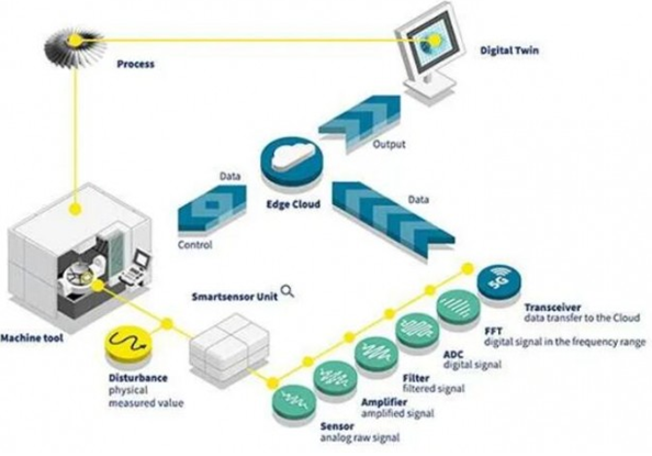 通過邊緣云技術(shù)將數(shù)據(jù)實(shí)現(xiàn)雙向傳輸,一個(gè)方向傳輸?shù)綄?shí)際加工場(chǎng)景中進(jìn)行加工過程干涉,另外一個(gè)方面?zhèn)鬏數(shù)綌?shù)字孿生體系統(tǒng)中,使得數(shù)字孿生體實(shí)現(xiàn)更為精準(zhǔn)的過程預(yù)測(cè)。