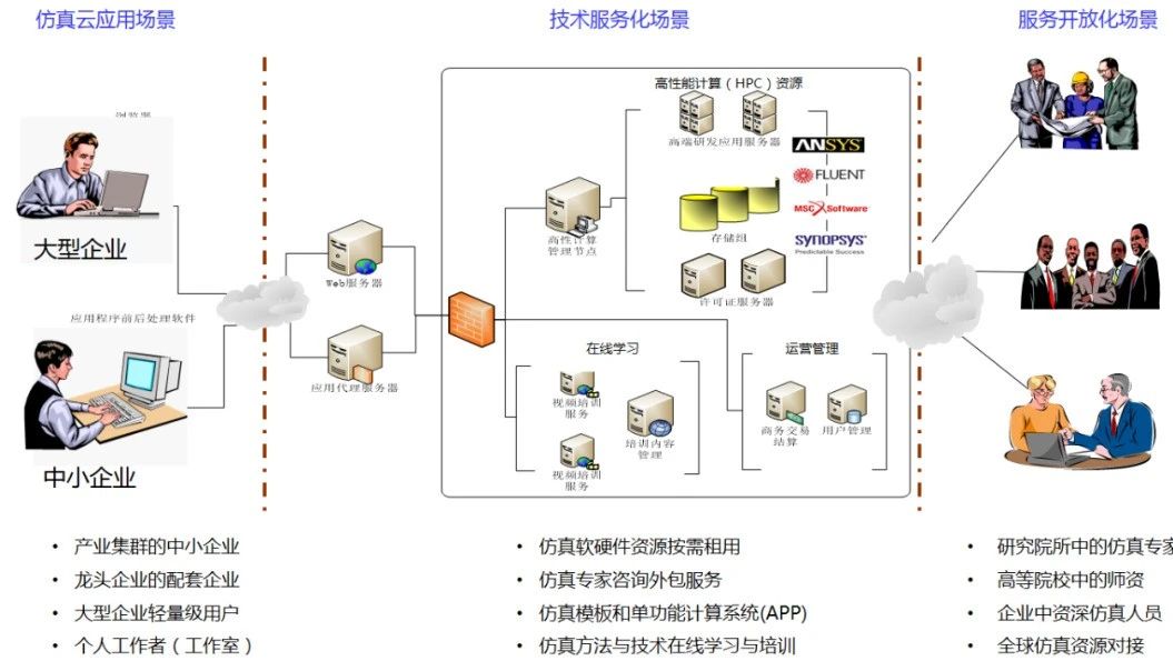 仿真進入云計算時代,使得仿真具有兩大特征:技術服務化和服務社會化。過去仿真軟件是用來賣的,但今后軟件是提供服務的載體,軟件和硬件通過訂閱即插即用,即退即停。過去仿真軟件的技術服務是由供應商來做,但今后的仿真服務的人員可能是社會上的任何人。一個人既是服務的提供者,又是服務的受益者。