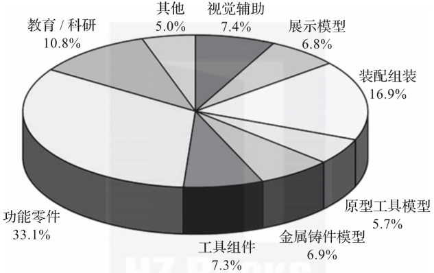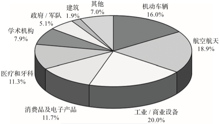 圖1-7 目前AM的應(yīng)用領(lǐng)域(由Wohlers Associates提供)