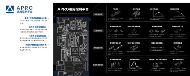 APRO是基于專用執(zhí)行模塊、通用IO模塊、傳感模塊,以及網(wǎng)絡互聯(lián)架構(gòu)的通用控制平臺,它的誕生源于德迪智能對增材制造過程本質(zhì)特性的理解,即將更高密度的設計信息賦值到物質(zhì)對象上,以獲得制品性能的升級。在設計之初就瞄準提供強大、穩(wěn)定的信息存儲、運算及輸出能力;適應靈活多變的3D打印形式;兼顧多種形式的高速運動控制任務;具備種類齊備的傳感系統(tǒng)等核心需求。