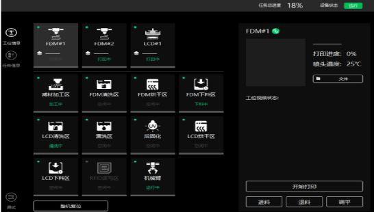 工位控制:FDM,SLA/LCD, CNC, 清洗,漂洗,光固化,