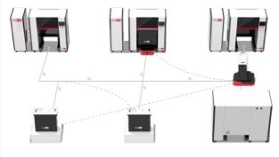 本產(chǎn)品集成多個(gè)打印工位、后處理工位、表面處理工位、等待工位、故障工位、AGV小車、裝卸式成型倉(cāng)、模型收納單元的柔性自動(dòng)化生產(chǎn)系統(tǒng),無(wú)需人工干預(yù)即可實(shí)現(xiàn)連續(xù)批量自動(dòng)化生產(chǎn),在降低生產(chǎn)成本的同時(shí)極大提高了生產(chǎn)效率。