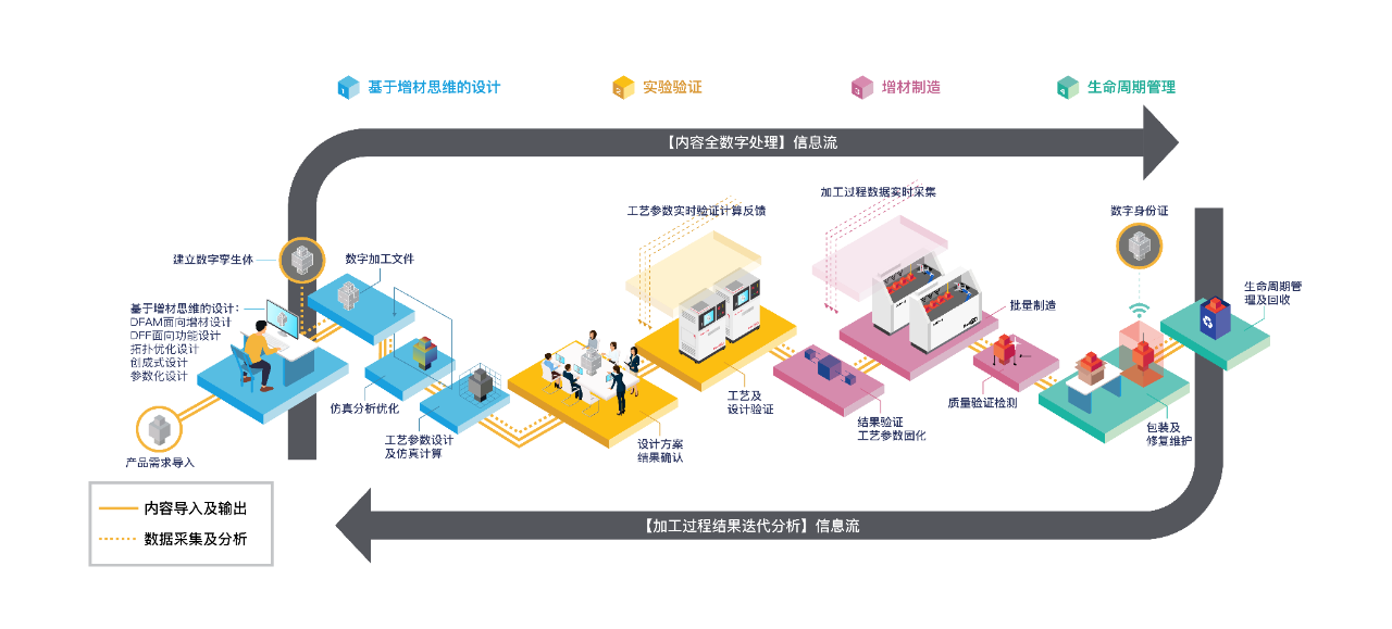 區(qū)別于傳統(tǒng)金屬3D打印設計→打印→后處理→測試的方式,安世增材利用數(shù)字孿生和模擬仿真建立一套數(shù)字化打印系統(tǒng),在金屬零件設計方案確定后,實際打印作業(yè)前,對金屬零件進行虛擬打印,記錄并反饋金屬零件打印過程中工藝參數(shù)、設備狀態(tài)、金屬粉末材料狀態(tài)等情況,并對打印結果進行模擬仿真。實現(xiàn)對金屬零件打印時可能出現(xiàn)的錯層、孔隙、致密度、殘余應力、翹曲、表面光潔度等問題進行提前預判,為優(yōu)化打印流程和打印結果提供可靠依據(jù)。