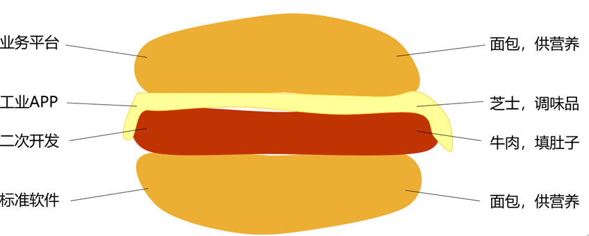 上面這個(gè)漢堡圖有四層結(jié)構(gòu),最底層是標(biāo)準(zhǔn)工業(yè)軟件,它距離自然科學(xué)最近,所以容易標(biāo)準(zhǔn)化和普世化。