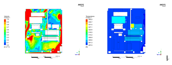 圖11 某SLM增材設(shè)備的整機(jī)散熱分析結(jié)果(速度云圖和溫度云圖)