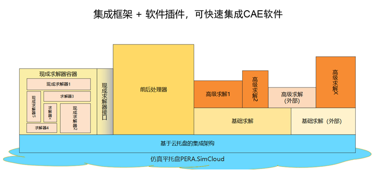因此,我們提出一個能共同工作的框架,這個框架分兩種類型:一種是基于云托盤的方式,整合實際上大家現成的、或者已經獨立化的仿真技術或軟件。在云托盤上做一個集成架構,這個集成架構是插件式的,如果外部軟件能做成插件需要的接口方式,就可以插到基礎架構中,變成這個體系的一部分。
