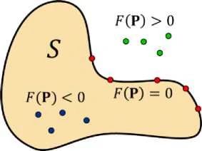 如上圖所示,該函數(shù)最重要的特性是:實體外部點對應(yīng)的函數(shù)值是正數(shù),但內(nèi)部點的函數(shù)值則是負(fù)數(shù),同時函數(shù)結(jié)果的絕對值即為點與實體的距離。學(xué)術(shù)一點的說,如果F是實體S的隱式函數(shù),那么當(dāng)點P在S內(nèi)時,F(xiàn)(P)<0,當(dāng)P在S外時,F(xiàn)(P)>0。當(dāng)然,如果點P正好在S的邊界處,則F(P)=0。