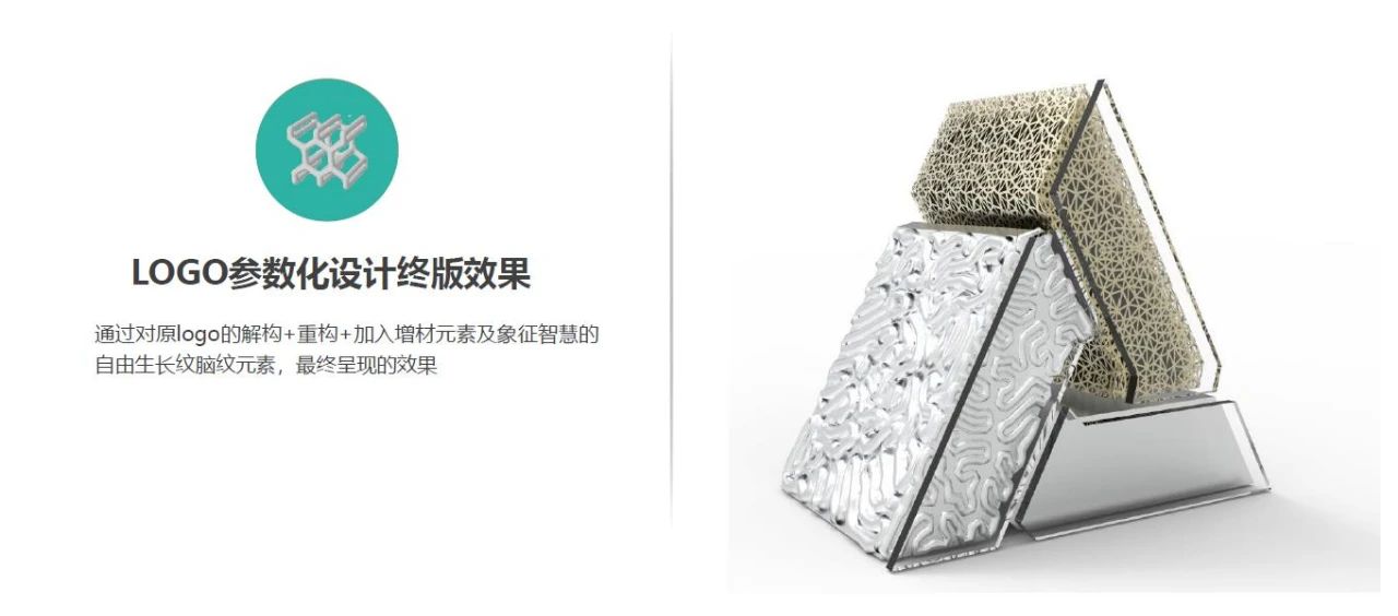此次多形態(tài)LOGO設(shè)計中,腦紋紋理及增材元素紋理看似毫不相干,且不以某個對稱軸為界完全對稱,但通過紋理的粗細、增材元素的密度比例等因素的合理搭配,達到了一種視覺上的均衡。