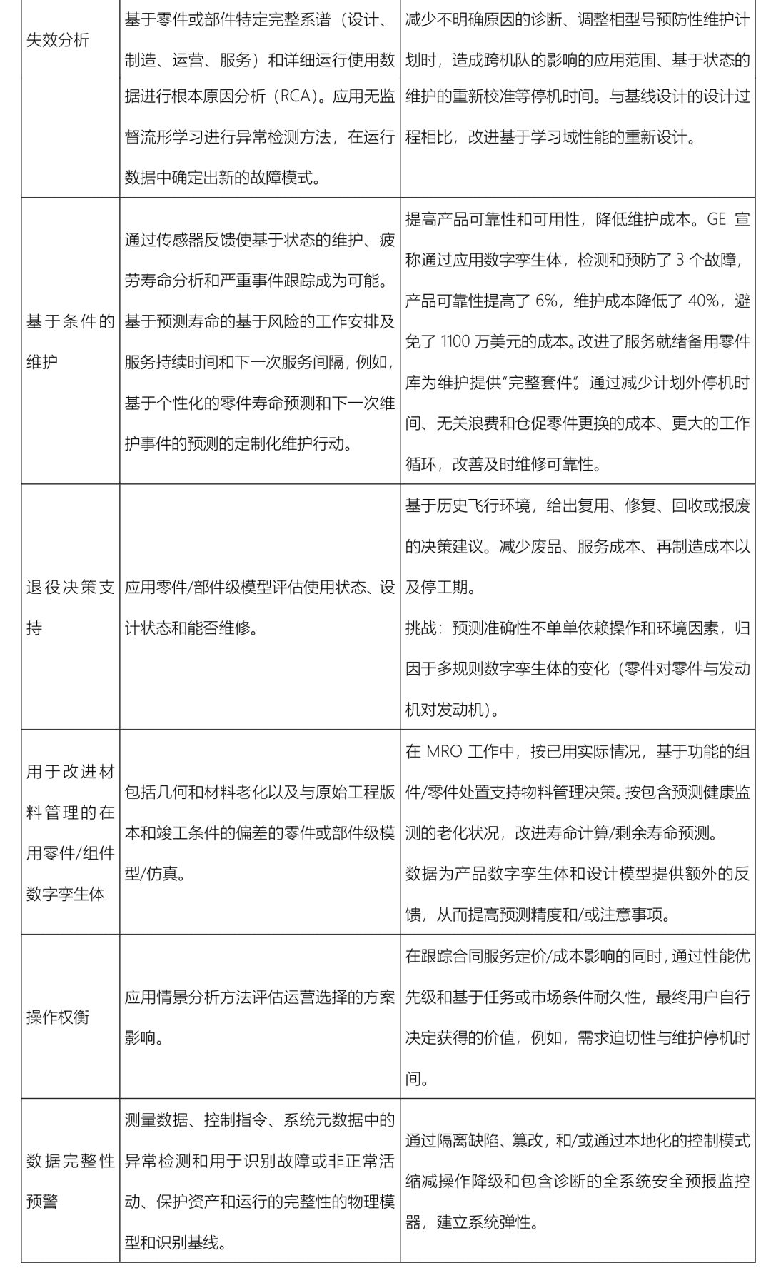 表2.3 支持和服務(wù)的數(shù)字孿生應(yīng)用(使用和維護(hù))