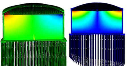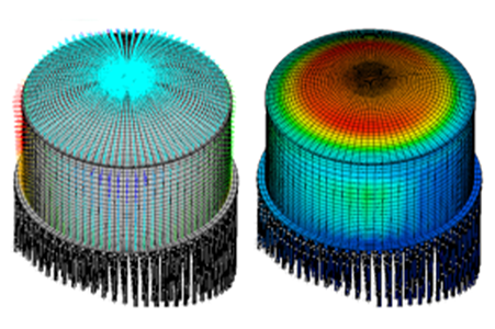 1.進行全參數(shù)化建模,考慮了幾乎所有設(shè)計參數(shù),分析模型涵蓋所有結(jié)構(gòu)部位以及罐內(nèi)液體、樁土作用等;