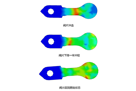 通過理論計算、非線性結(jié)構(gòu)靜力學(xué)分析、顯式瞬態(tài)分析三方面對閥片的運動受力過程進行模擬計算,分析的應(yīng)力最大值點和現(xiàn)場閥片斷裂點非常吻合,并可推斷出閥片的斷裂原,因為在閥片運動過程中,由超出疲勞極限的交變彎曲應(yīng)力產(chǎn)生的彎曲疲勞造成頸部斷裂,為后續(xù)閥片設(shè)計的改進提供方向。