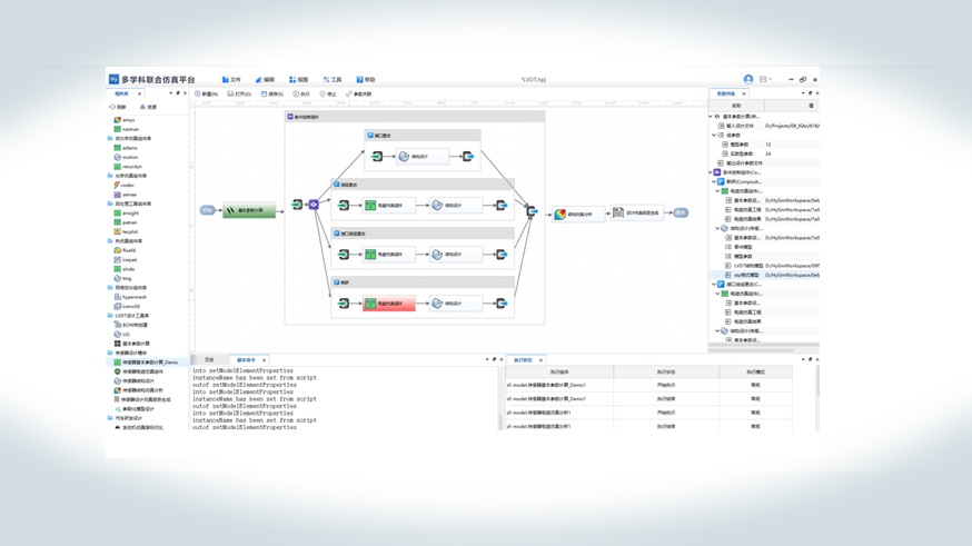 PERA SIM HySim具備基于參數(shù)驅(qū)動(dòng)的組設(shè)計(jì)仿真工具的調(diào)用功能,支持對設(shè)計(jì)過程數(shù)據(jù)/文件進(jìn)行動(dòng)態(tài)管理?;A(chǔ)環(huán)境提供多種通用標(biāo)準(zhǔn)化組件(如程序調(diào)用組件、公式封裝組件、腳本執(zhí)行組件、數(shù)據(jù)處理組件、報(bào)告生成組件等),并支持用戶基于SDK動(dòng)態(tài)擴(kuò)展個(gè)性化應(yīng)用組件。