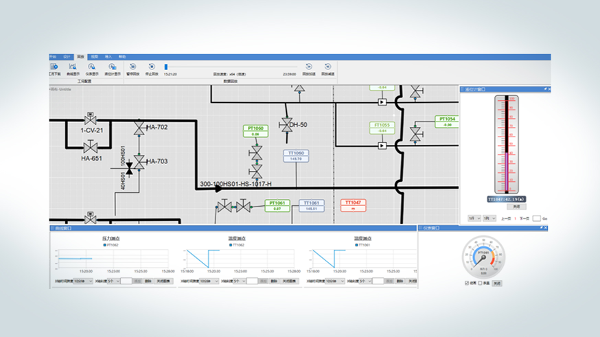 支持一維試驗(yàn)回放,通過自定義組件實(shí)現(xiàn)滿足實(shí)物試驗(yàn)場景的試驗(yàn)演示場景的搭建,支持試驗(yàn)數(shù)據(jù)的回放。可以通過儀表盤、數(shù)據(jù)曲線、液位圖等方式,全方位的展示試驗(yàn)過程數(shù)據(jù)。支持基于三維模型數(shù)據(jù)回放,系統(tǒng)提供基于三維模型的試驗(yàn)數(shù)據(jù)可視化能力,能夠根據(jù)試驗(yàn)數(shù)據(jù)對試驗(yàn)過程進(jìn)行場景化演示回放,可更直觀的發(fā)現(xiàn)試驗(yàn)異常。