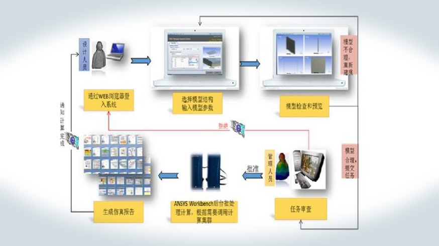 云計算系統(tǒng)已經(jīng)在某公司得以廣泛應用,原來只能由仿真計算人員才能完成的工作,現(xiàn)在所有設(shè)計人員在產(chǎn)品設(shè)計中基于該系統(tǒng)均可以自行進行分析校核工作,提升產(chǎn)品設(shè)計的效率,規(guī)范仿真計算的流程,且大大解放有限仿真人員的人力,使得仿真人員更有效地進行計算過程及計算結(jié)果的審核。