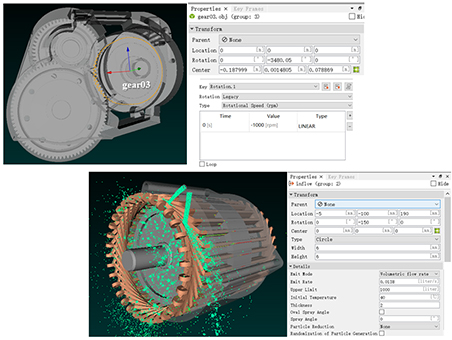 ParticleWorks直接將運(yùn)動(dòng)施加在CAD數(shù)據(jù)上,對(duì)于運(yùn)動(dòng)邊界問題的模擬展現(xiàn)出色的性能。可以簡(jiǎn)單的設(shè)置壁面邊界的平動(dòng)、轉(zhuǎn)動(dòng)等運(yùn)動(dòng),也可以完成流入邊界的液體以瞬態(tài)流速、體積流率等方式進(jìn)入計(jì)算域的設(shè)置。