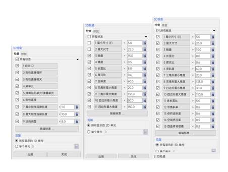 PERA SIM PreMech網(wǎng)格檢查功能,可以對1D、2D、3D單元的尺寸、歪斜、內(nèi)角、連接性定義不同的指標(biāo)進(jìn)行質(zhì)量檢查,并可以進(jìn)行單元的修復(fù)。除此之外,還可以快速的檢查模型中單元的方向、邊界,以及單元間的重疊、穿透。