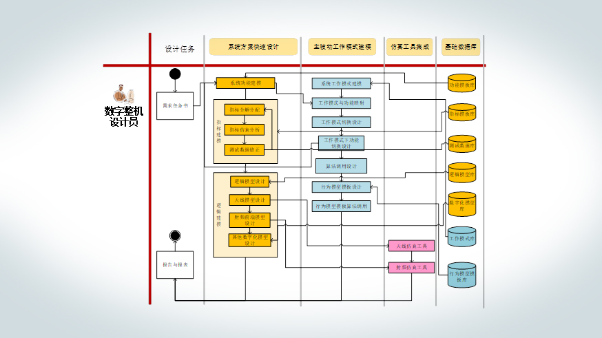 支持總體設(shè)計(jì)建立基于需求的系統(tǒng)架構(gòu)模型,并支持在研發(fā)全周期中基于系統(tǒng)模型的多專業(yè)迭代設(shè)計(jì)及驗(yàn)證閉環(huán)。-構(gòu)建用于仿真評(píng)估的系統(tǒng)功能模型和邏輯模型;-提供統(tǒng)一前處理和求解器調(diào)用環(huán)境,標(biāo)準(zhǔn)化封裝仿真評(píng)估模型;-提供多層級(jí)架構(gòu)模型行為級(jí)仿真和性能仿真功能,評(píng)估系統(tǒng)功能及性能屬性。