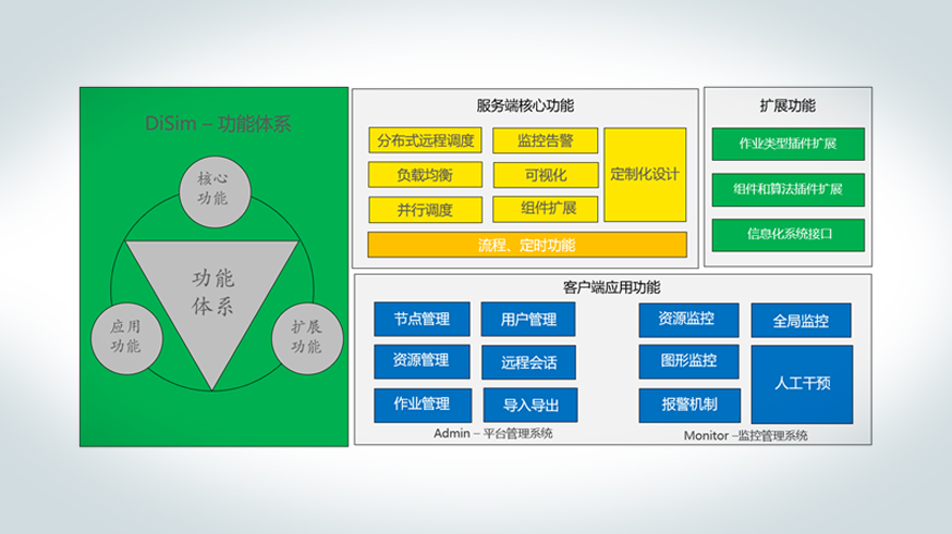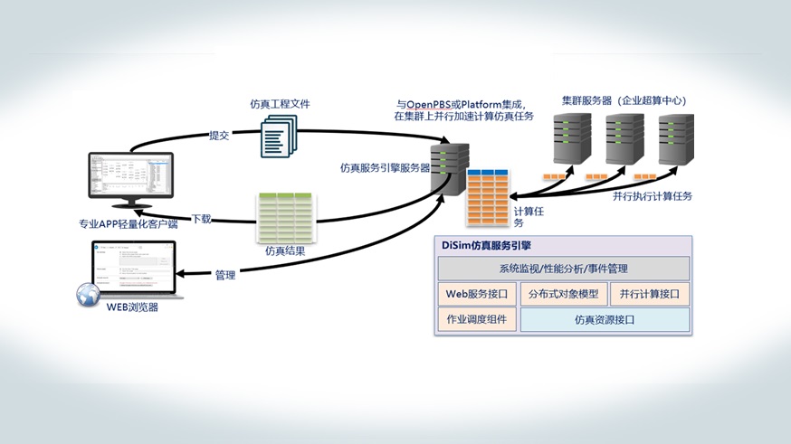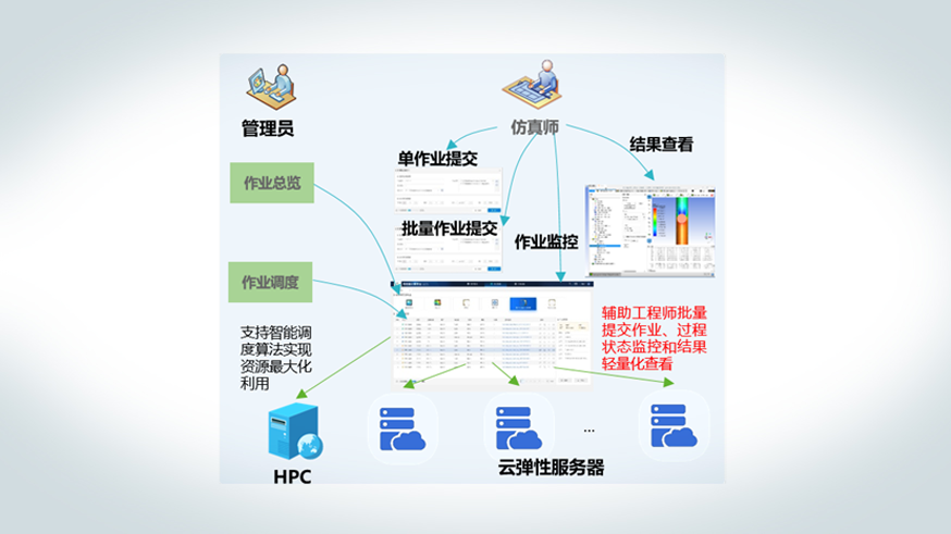 -基于智能控制調(diào)度算法實現(xiàn)分布式硬件計算資源與軟件資源的高效調(diào)度-基于多種仿真CAE工具的調(diào)度接口和集成開發(fā)接口實現(xiàn)仿真工具深度集成-與其他高性能計算系統(tǒng)的集成接口實現(xiàn)基于數(shù)據(jù)的高效集成