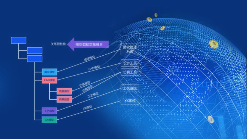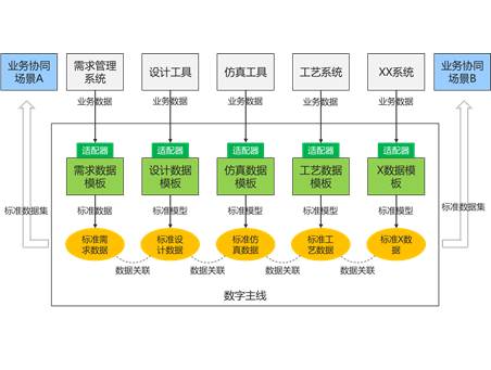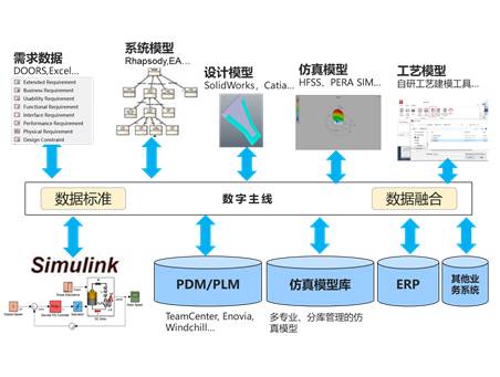 數(shù)字主線提供了數(shù)據(jù)倉庫,結(jié)合對產(chǎn)品數(shù)據(jù)標(biāo)準(zhǔn)的支持,成為各領(lǐng)域產(chǎn)品模型進(jìn)行協(xié)同的總線??蓪崿F(xiàn)各領(lǐng)域模型間的一致性、可追蹤性、可驗證性和全生命期的動態(tài)關(guān)聯(lián)性成為“基于模型”的研發(fā)模式。