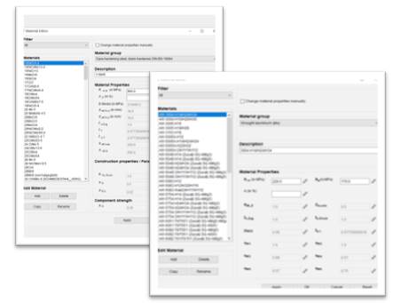 將母材及焊縫的所有材料相關(guān)參數(shù)進行梳理和開發(fā),并支持新材料疲勞數(shù)據(jù)的創(chuàng)建、保存;也支持刪除和拷貝FKM或原有數(shù)據(jù)庫的材料疲勞數(shù)據(jù)管理。