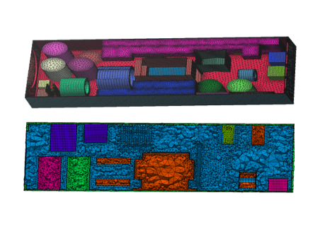 支持全自動(dòng)化的幾何修復(fù),支持重疊節(jié)點(diǎn)合并、檢漏、補(bǔ)洞、交叉切割等操作,支持對幾何的復(fù)制、移動(dòng)、縮放等操作,方便創(chuàng)建立方體、圓柱體、球體、圓錐體等幾何形狀,能夠自動(dòng)地根據(jù)幾何模型的拓?fù)浣Y(jié)構(gòu)封閉性,抽取出封閉的體積空間作為流體計(jì)算域。