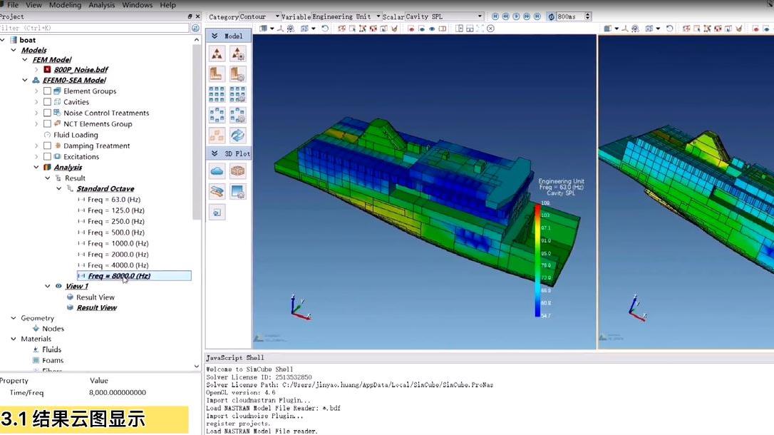 復(fù)雜結(jié)構(gòu)的中高頻噪聲控制一直以來都是各工業(yè)領(lǐng)域研究的重點(diǎn)與難點(diǎn),尤其對于大型船舶,其內(nèi)部環(huán)境相比其它工業(yè)產(chǎn)品更加獨(dú)特,船舶艙室噪聲控制與預(yù)測尤為困難。基于能量有限元理論,應(yīng)用PERA SIM ProNas軟件對復(fù)雜激勵在船舶各艙室產(chǎn)生的中高頻結(jié)構(gòu)噪聲及空氣噪聲進(jìn)行仿真計(jì)算,具體操作詳見視頻。通過分析確定激勵源及傳遞路徑處的能量分布云圖,對不滿足噪聲目標(biāo)的艙室進(jìn)行聲學(xué)優(yōu)化,最終解決了大型實(shí)際船舶工程的中高頻噪聲預(yù)測與控制問題,提高船舶的噪聲設(shè)計(jì)質(zhì)量,縮短研發(fā)周期,節(jié)約開發(fā)成本。
