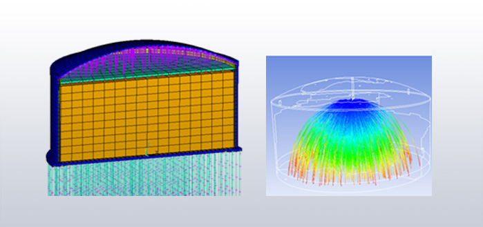 采用CAE技術(shù)可以解決各類管道工程施工及使用過程中的復(fù)雜力學(xué)問題,例如長距離埋地、水平定向鉆穿越管道、架空跨越管道、海底管道等,可以為管線安全可靠性、強度以及穩(wěn)定性進行模擬,進而提供相應(yīng)的完善解決方案。采用CAE技術(shù)對LNG儲罐系統(tǒng)進行仿真分析,包括溫度場分析、結(jié)構(gòu)力學(xué)分析、儲罐管道系統(tǒng)預(yù)冷模擬和爆炸、泄漏、擴散、翻滾等的安全評估。